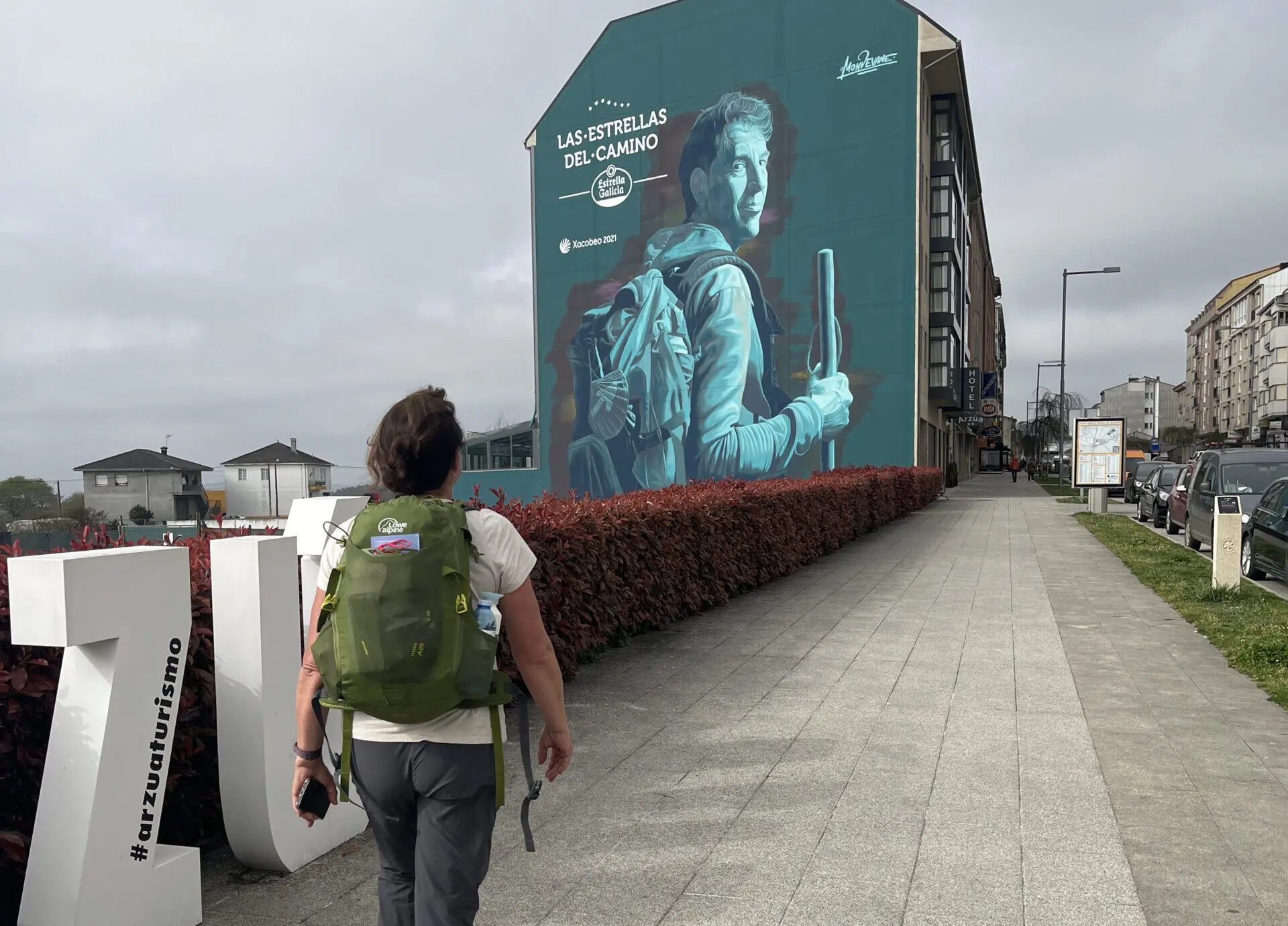 Na Grandas de Salime bij het stuwmeer bereiken we A Fonsagrada, waarbij we vlak ervoor de grens naar Galicië oversteken. Hier verandert niet alleen het landschap, maar ook de cultuur. Zelfs de mijlpalen langs de weg zijn anders – ze geven vanaf nu de richting aan met een pijl in plaats van met de schelp. Nog 166 km tot Santiago.