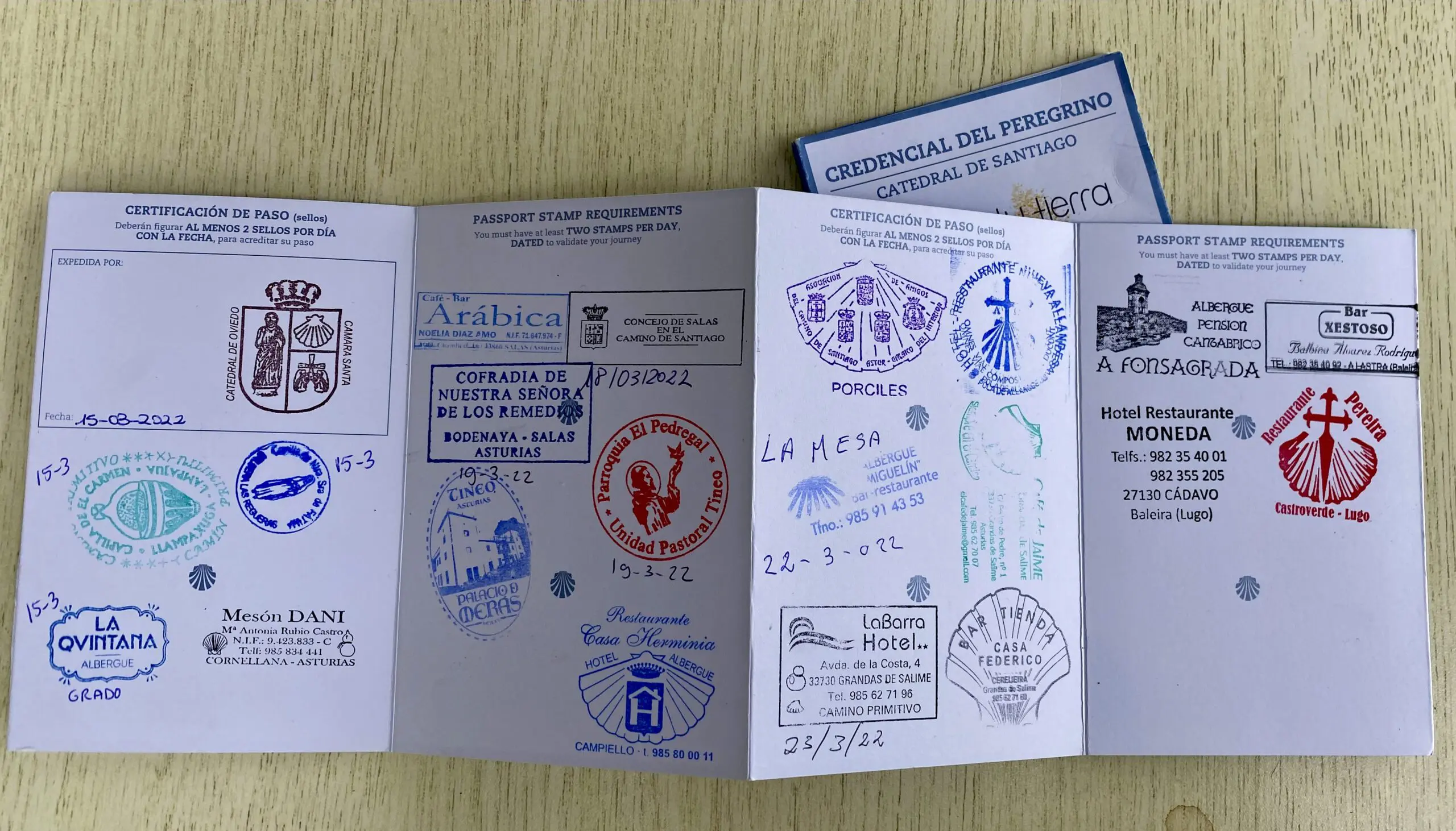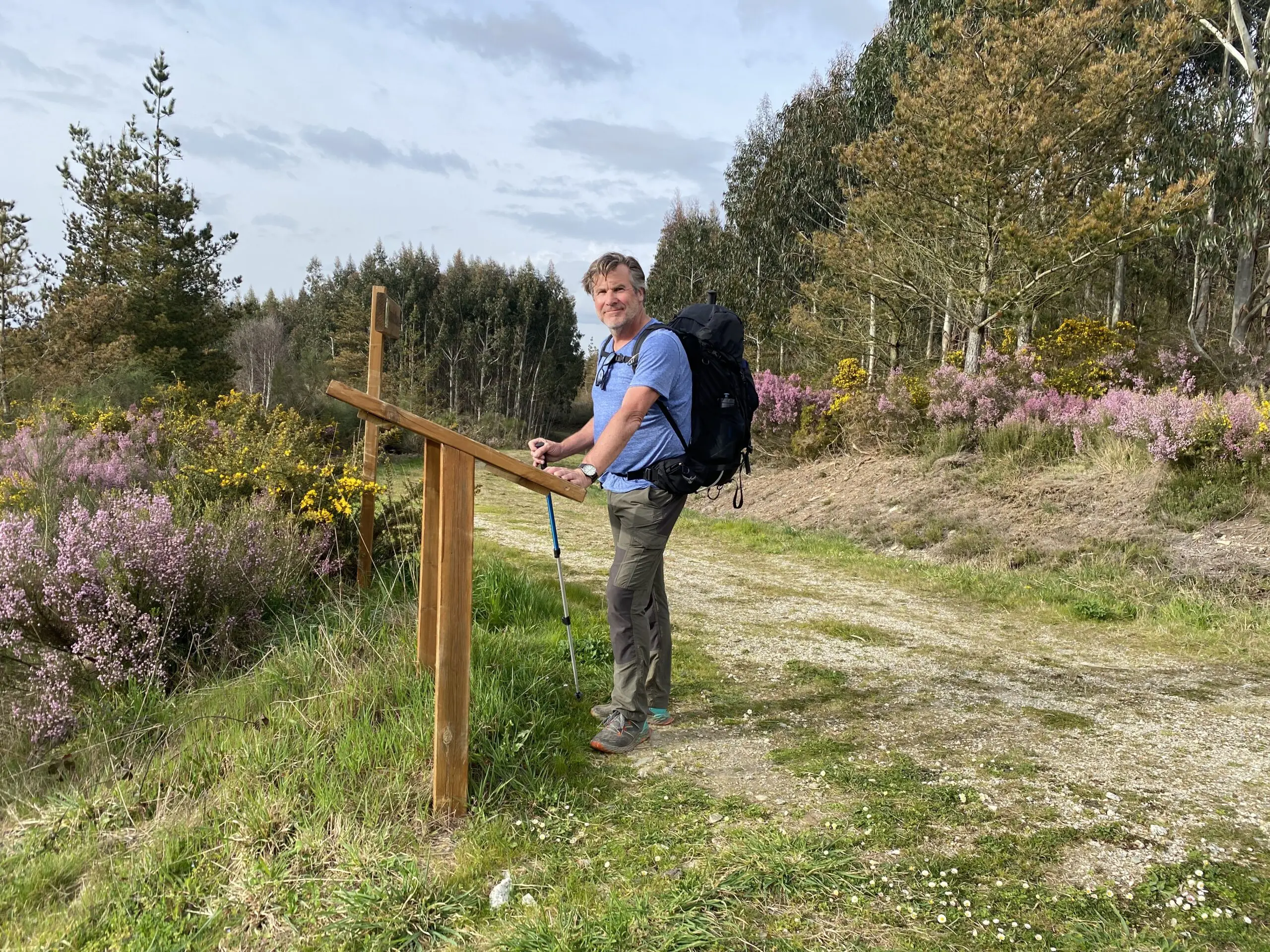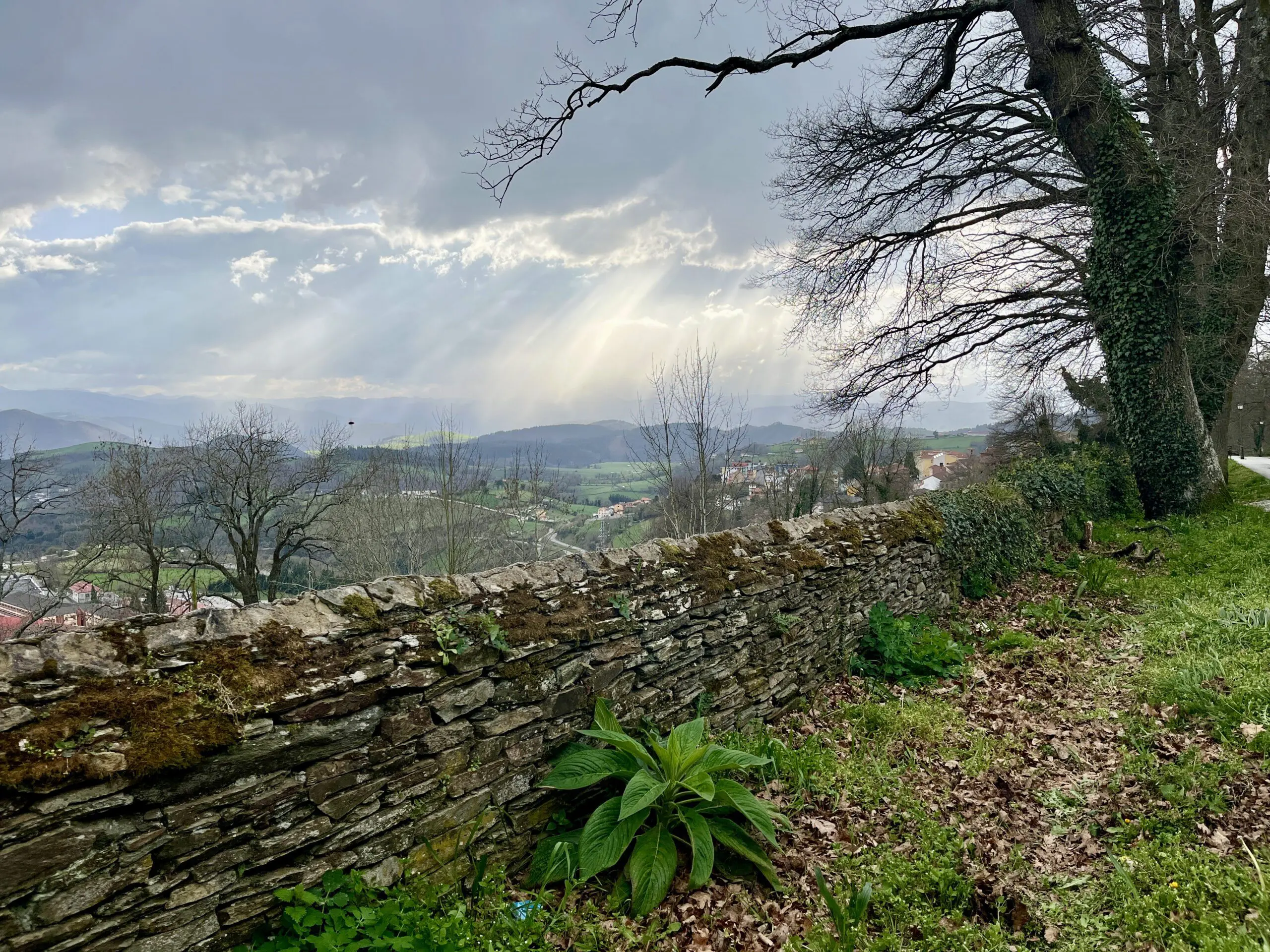 Er zijn niet veel pelgrims die half maart de Primitivo lopen, dus er ontstaat al gauw een band met degenen die we onderweg tegenkomen. Zo ontmoeten we een Catalaan van in de zeventig met een vakbondsverleden, die ons inhaalt terwijl we tussen Salas en Tineo op een muurtje zitten om te lunchen. Even maken we een praatje; deze Camino stond nog op zijn lijstje. Door de jaren heen had hij al vele andere routes gelopen.