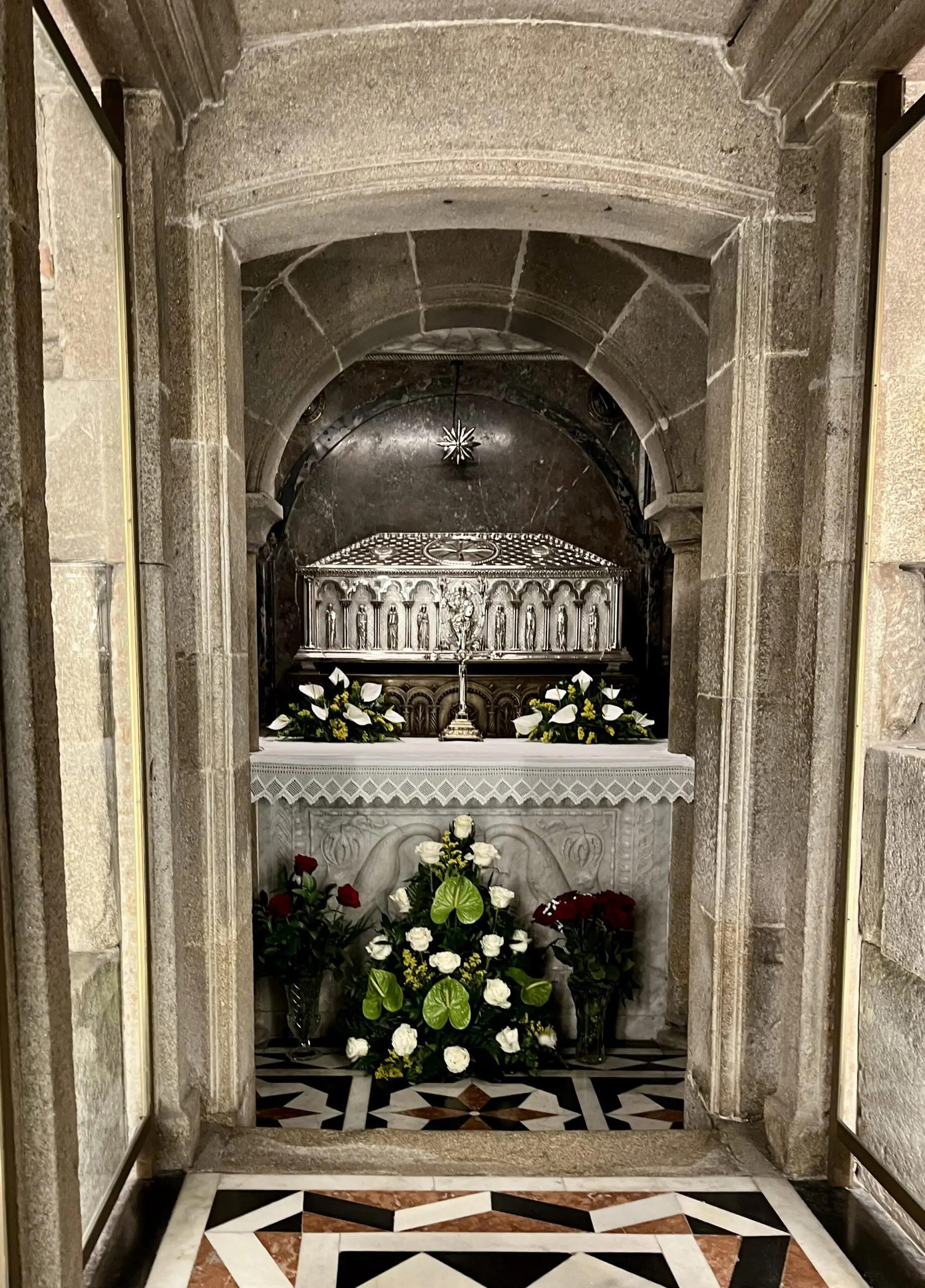 De aankomst in Santiago de Compostela zie je van verre aankomen. De torens van de kathedraal komen in zicht. Vanaf Monte Gozo loop je de stad binnen, die aan je voeten ligt. Uiteindelijk bereikten we de oude binnenstad met haar smalle middeleeuwse straatjes. Onder de laatste poort werden we verwelkomd door het geluid van een Galicische doedelzakspeler.