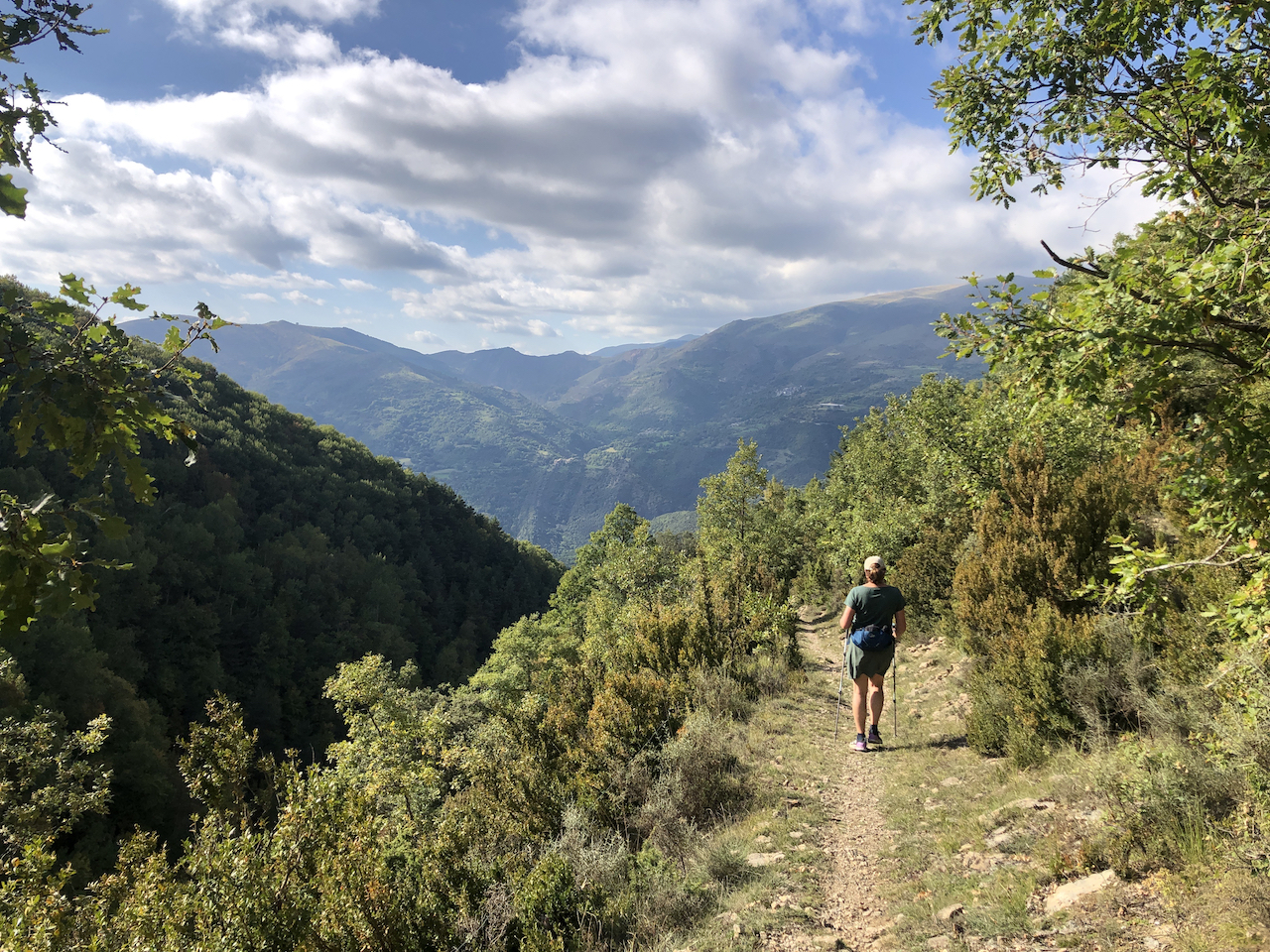 De komende dagen variëren de lengtes van de etappes van 15 tot 25 kilometer en kunnen we deze als we willen inkorten. Zowel bij de start kunnen we iets verderop worden afgezet of aan het einde wat eerder worden opgehaald. Er ligt zelfs al een standaard inkort-voorstel klaar als je sowieso liever wat minder loopt. Zo leren we ook Carme kennen, de lokale taxichauffeur die zich verbonden heeft aan de tocht, de wandelroutes kent en ons overal wil ophalen waar ze met een gewone auto kan komen. Lukt dat niet dan komt haar man met een 4×4.